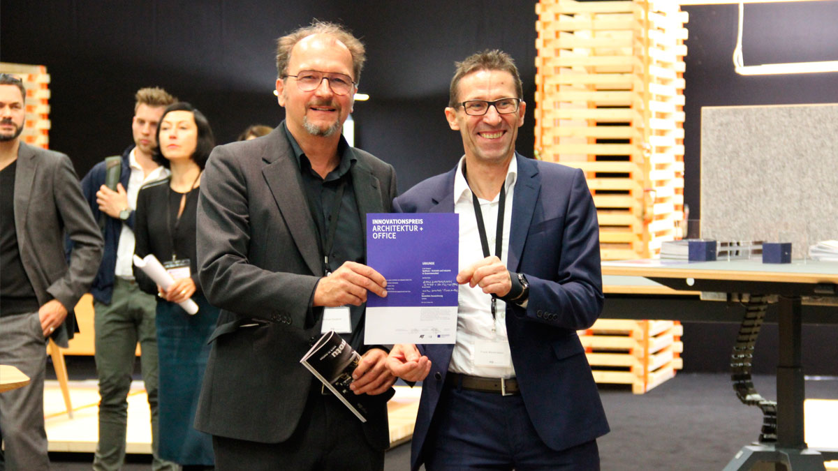 Der Kleinstarbeitsplatz Sputnik und der Tisch A aus der von wd3 entworfenen Serie motu werden mit dem Innovationspreis Architektur + Office 2016 der Zeitschriften AIT und xia Intelligente Architektur