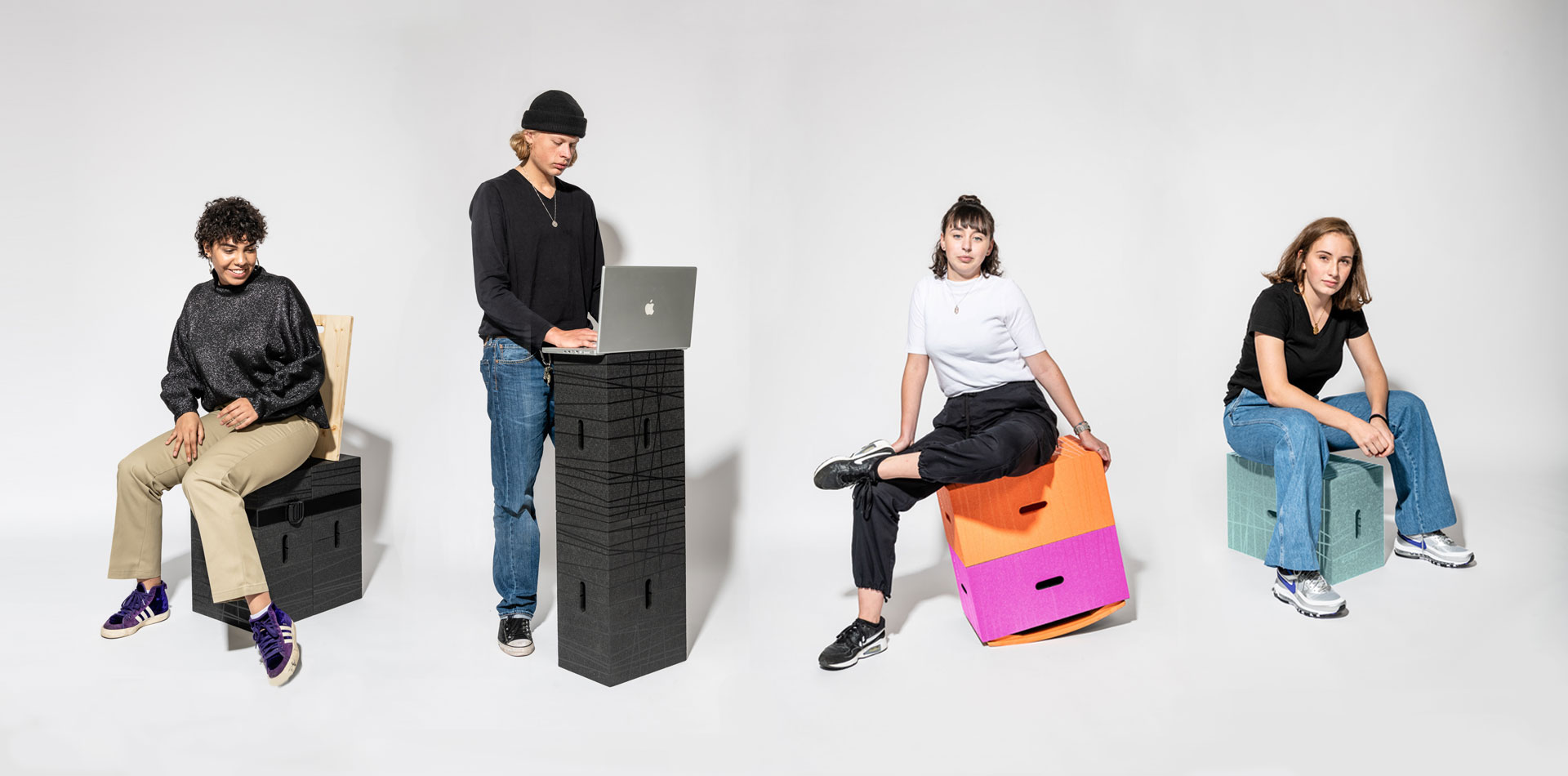 Das Einfache ist bekanntlich oft schwierig. So haben wir ungefähr ein Jahr intensiv an der Umsetzung gearbeitet und sind dabei sehr weit in das Werkstoffthema eingestiegen. Schließlich wollten wir ein leichtes, einstofflich aufgebautes, schadstofffreies, nachhaltiges und vielseitig kombinierbares, also adaptives Produkt haben. Weil wir keine großen Stückzahlen anvisieren, fallen ja bestimmte Produktionsprozesse von vornherein raus, mit EPP glaubten wir eine problemlose Lösung gefunden zu haben. Aber tatsächlich trafen wir schnell auf Vorbehalte bei möglichen Produktionspartnern.